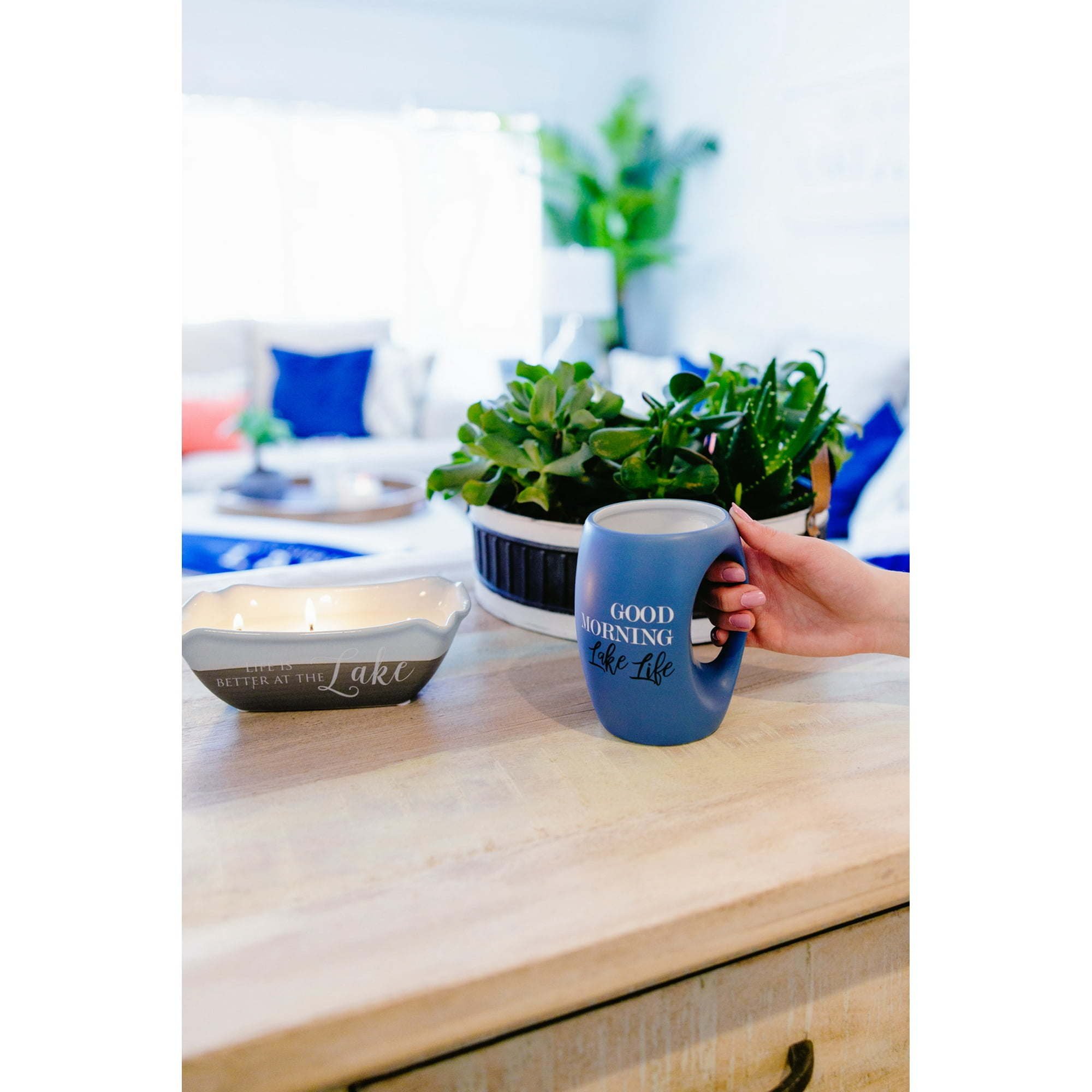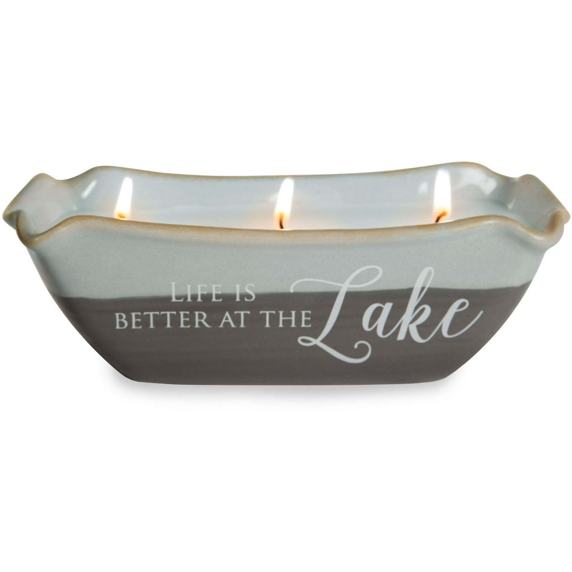 IN-HOUSE DESIGN: "Life Is Better At The Lake" text is printed onto the front of the candle.
