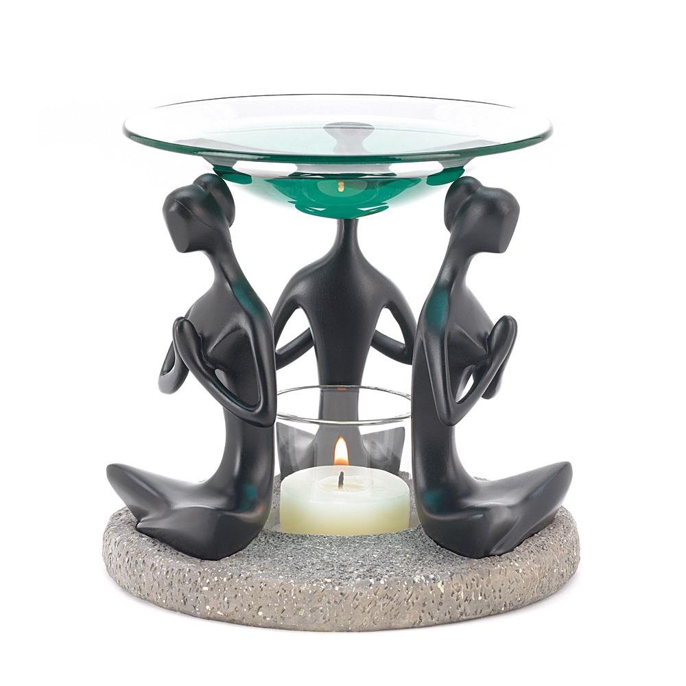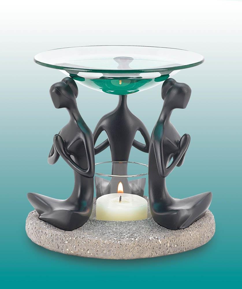 A trio of women bow their heads in reverent reflection, offering up a heartfelt prayer of gratitude and joy. From within the heart of their circle, a glowing votive gently warms a pool of aromatic oil on the transparent plate above. An elegant decoration that inspires a feeling of serenity! Weight 1.5 pounds. 5.25" x 5.25" x 4.75". Polyresin, Glass. UPC Number:849179004019.