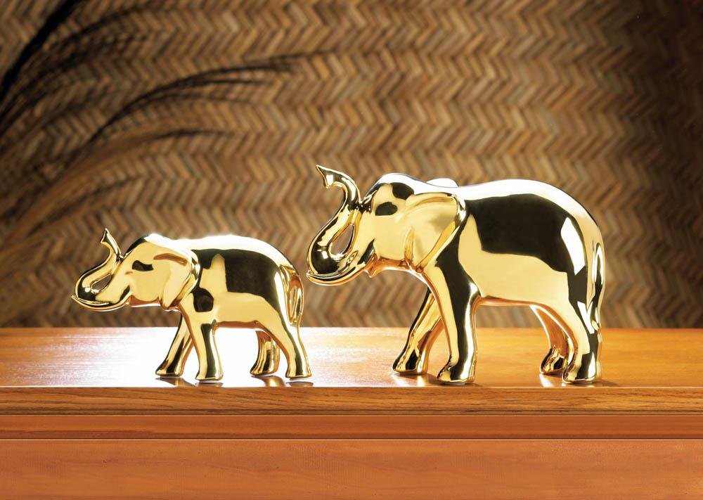 • A symbol of good luck and a showcase of style, this golden elephant figurine will look great wherever it roams. From your mantel to your table, you'll love the bright shine this high-polish gold elephant brings to your home.