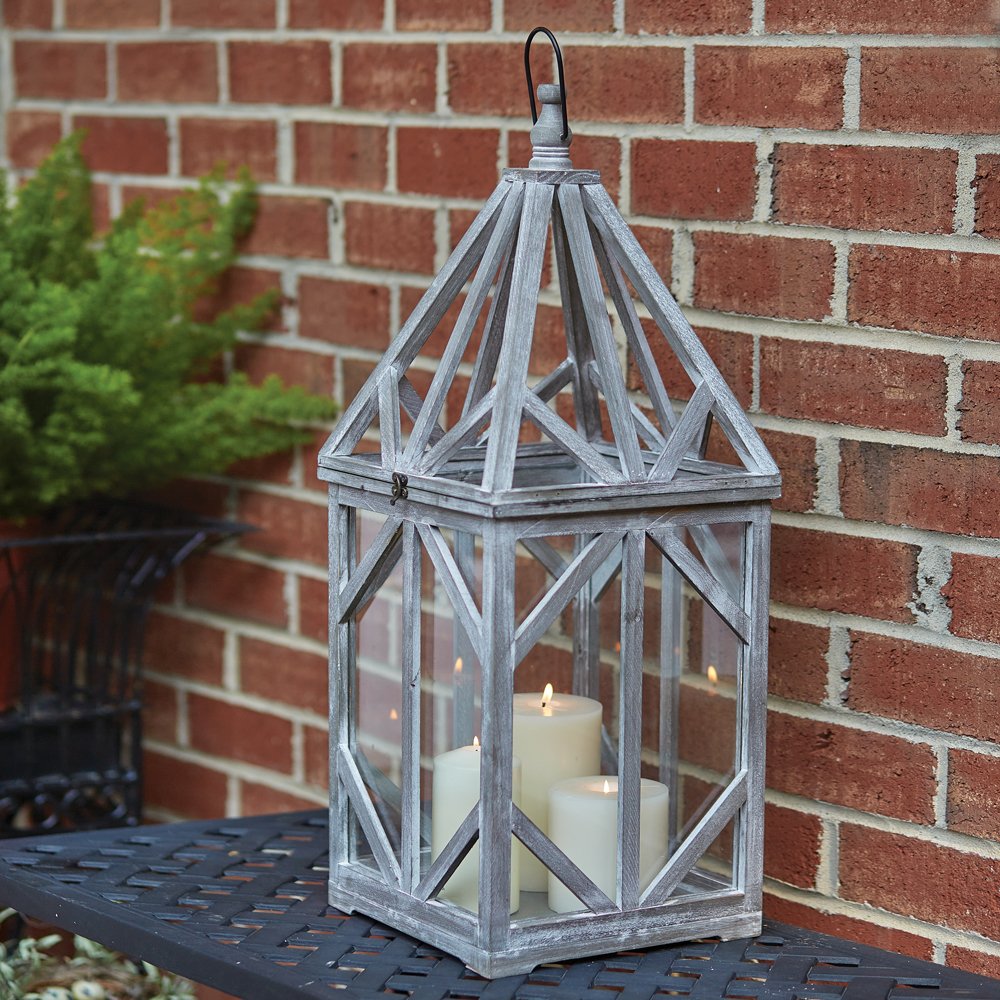 Use our Driftwood Lantern on your front porch for a seasonal or everyday display. Item is made out of wood and glass and opens from the top with a brass latch. Size: 10½'' sq. x 30''H