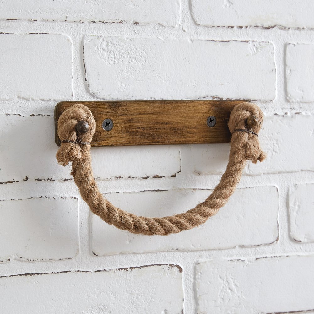 Just because it is bathroom decor, does not mean it can't be cute! This toilet paper holder is a fun way to organize your toilet paper. Item features an elegant antique brass plate with jute rope. To hang, use a screw with its two screw holes.