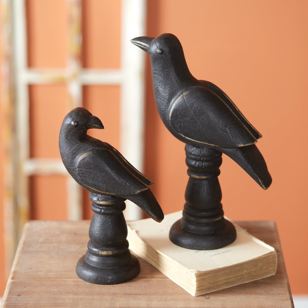 Give an uncanny premonition to any room with this set of raven statues. These can be displayed nicely on a tabletop with other Halloween decor. Smallest measures 5½''W x 3½''D x 9''H''.